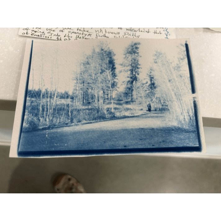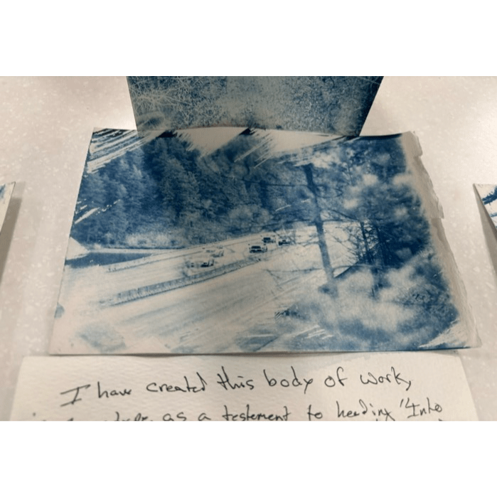 The use of cyanotype further solidified the uncertainty of going “Into the Unknown” and speaks to the plethora of emotions that can be felt, including sadness, joy, fear, and excitement