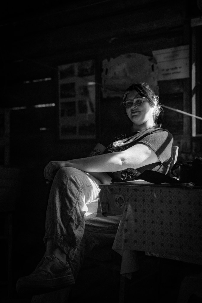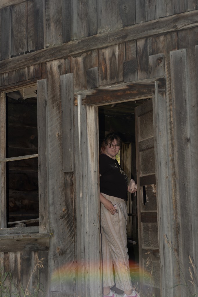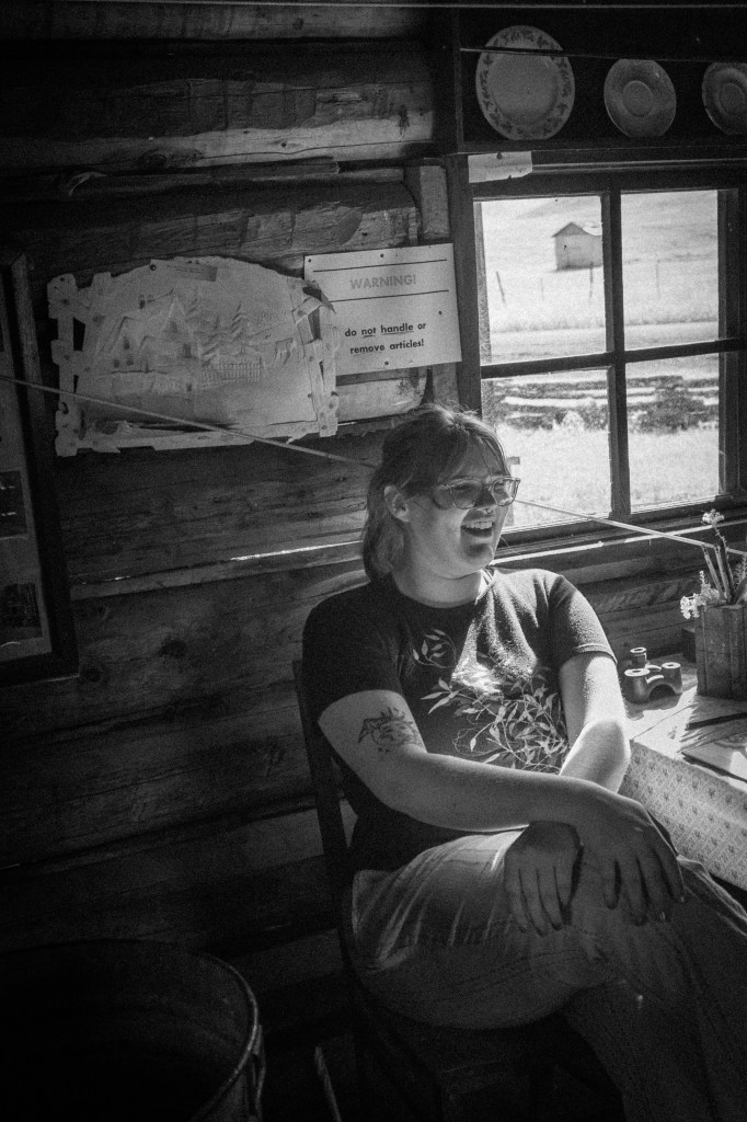 Molson has been set up as a museum, with a number of standing buildings in their traditional setups. Our group dispursed through the town, taking photos and exploring. The first building I entered was set up as an old one room house like structure. A friend came in after me and the light pouring through the window was this beautiful gentle light that created a contrast on the chair beside it. I decided this was the perfect lighting to play with, and convinced Leann to sit and let me photograph her. These turned out fun and looked amazing in black and white, though a bit dark.